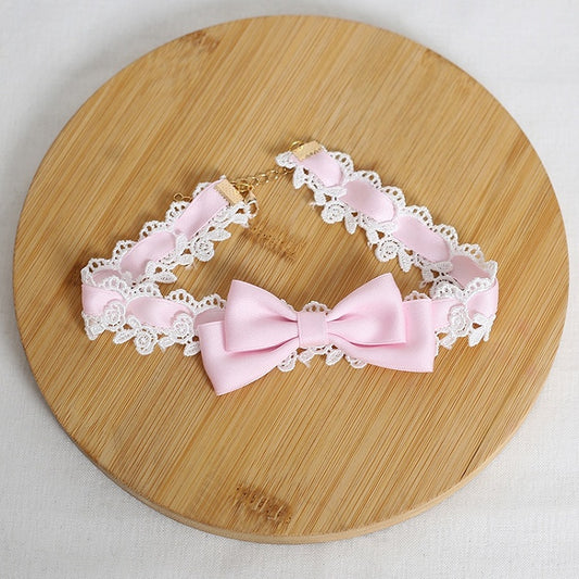 Sweet Blue / Lace White Choker Bowknot Lolita Pink