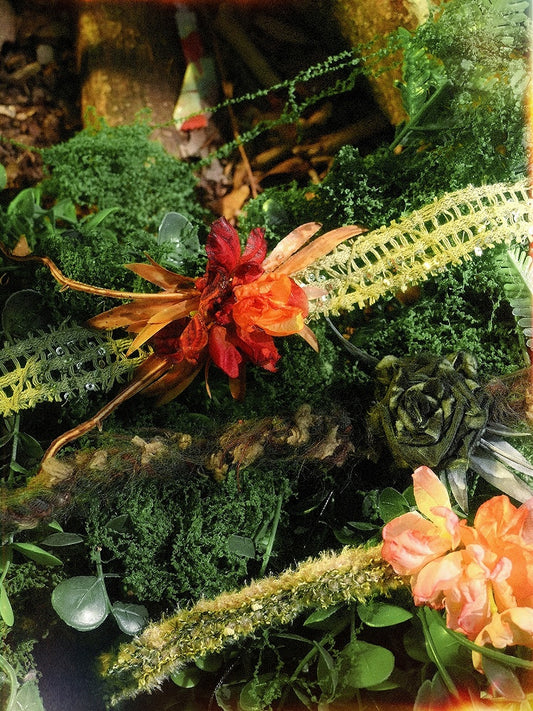 Beige Sunflowers Embroidery Blouse + Green Tiered Skirt with Sunflower Charm Set
