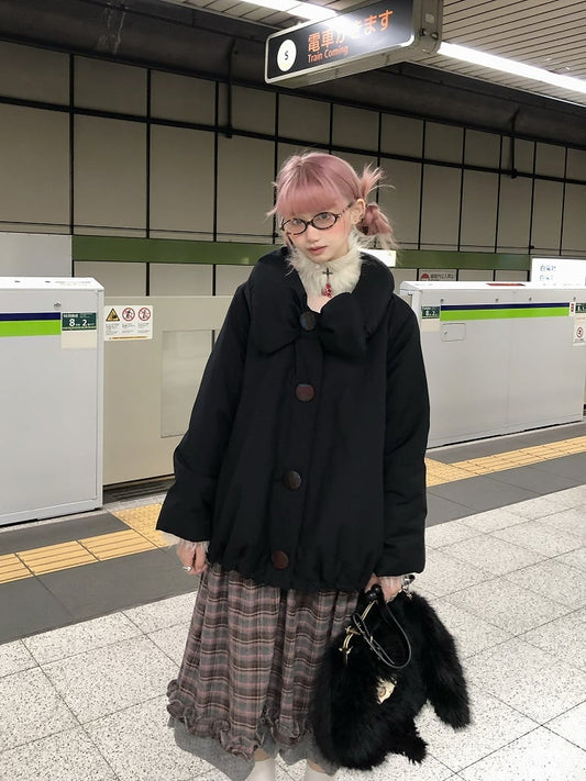 Plus Black Size Drawstrings Pompon Jacket Hoodie Stripes with Bunny Gray