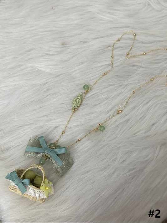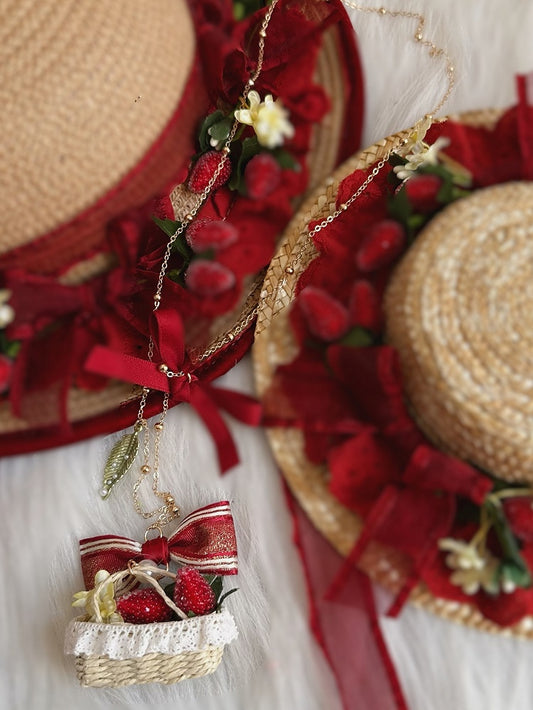 Ribbon Necklace Strawberry 2 Bow Decorations Pendant Options