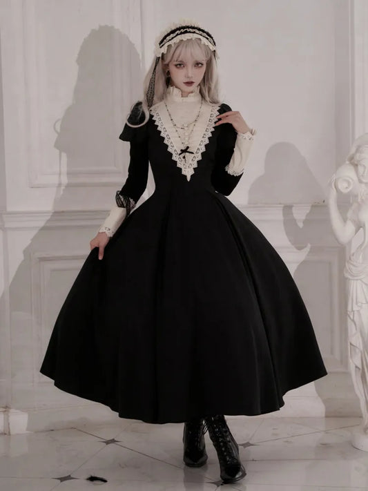 Black Under Bust Drawstring Hem Kuro Spider Web Fabric Gothic Lolita Dress