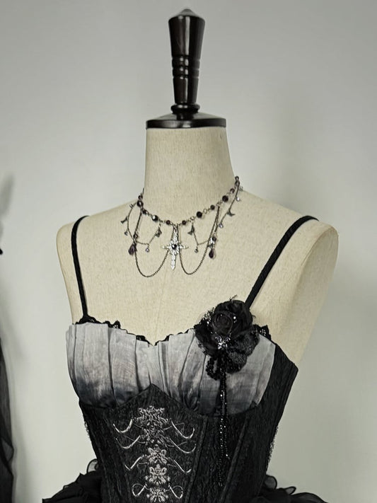 Multi-Layered Shoulder Black Choker Velvet with Chains Gothic