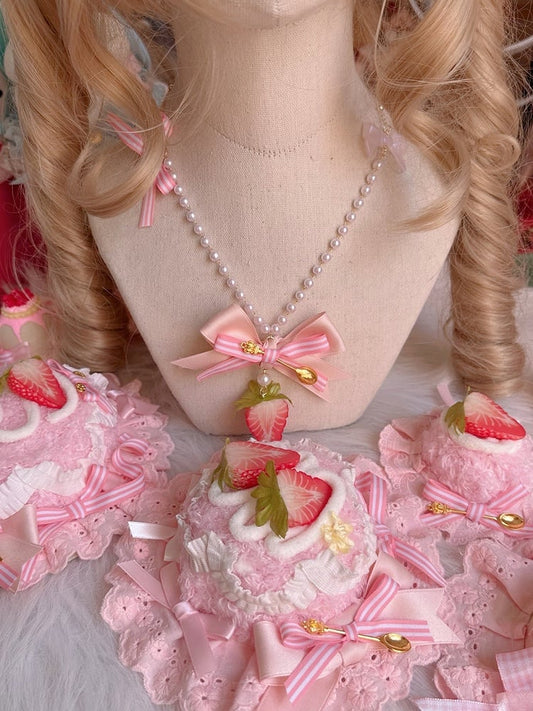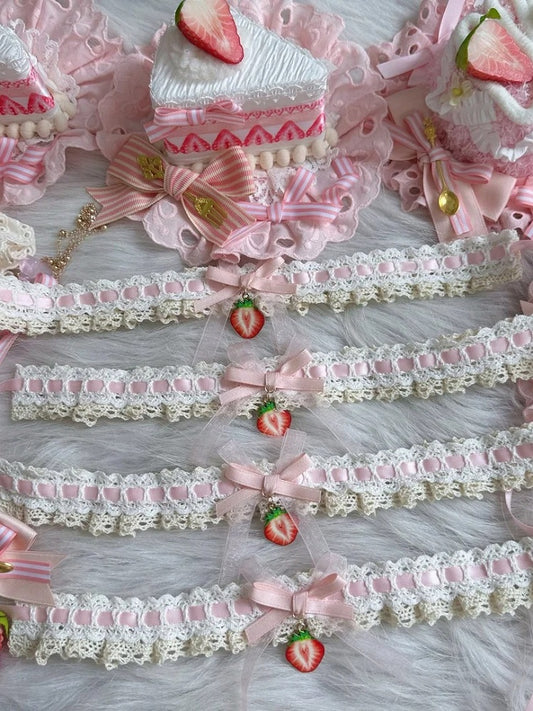 Sweet Strawberry Lace Lolita Pendant Trim with and Choker Pink