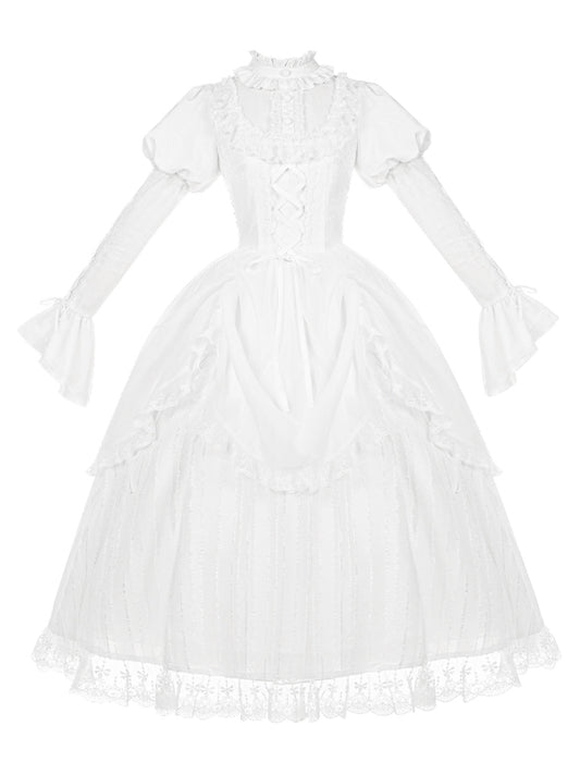 Lolita Drawstring Sleeves Ruffle Gothic Juliette Overlay Dress White Neckline with