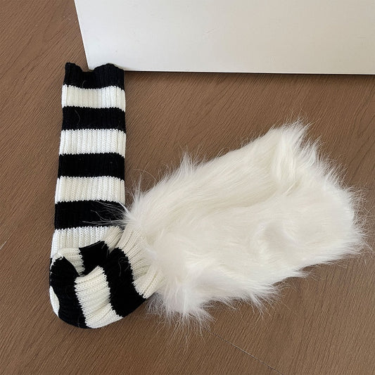 Striped Leg Warmers Faux Fur 4-Color Cuffs with
