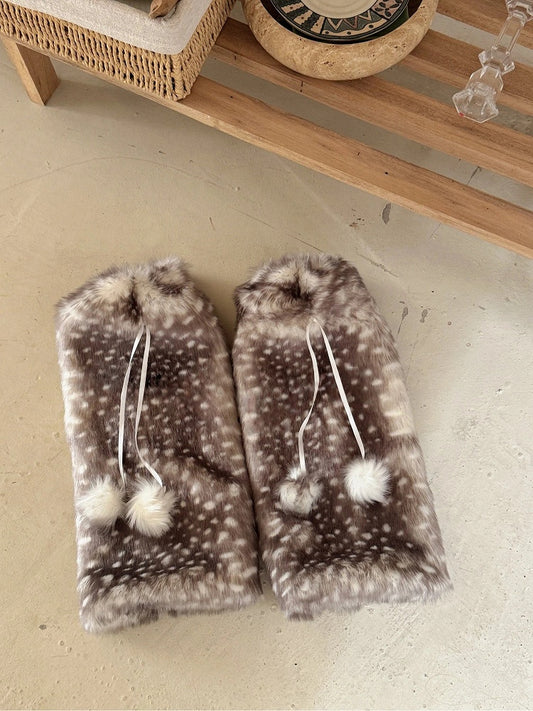 with Leg Warmers Ties Faux Fur Pom-Pom Pattern Deer-Spot