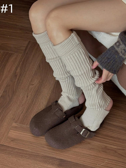 4 Colors Footed Knitted Leg Warmers