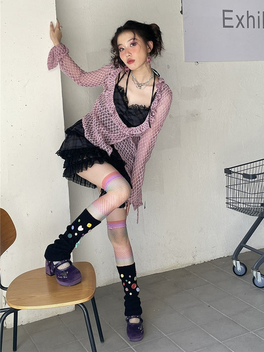 Punk Leg Warmers Y2K Cross Applique