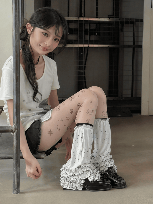 Layered Polka-dot Cuff White Ruffle Pattern Leg Warmers