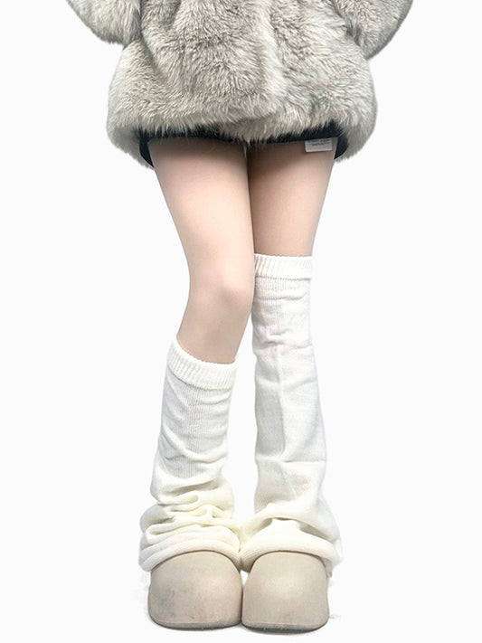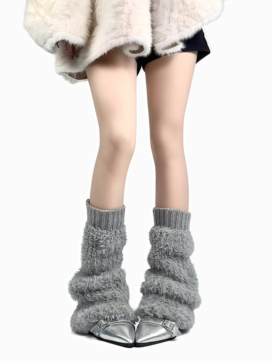 Off-white/Grey/Black Knitted Cuffs Plush Leg Warmers
