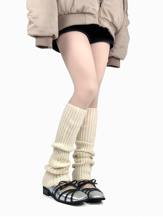 Milk White/Grey/Coffee/Black Split Knitted Leg Warmers