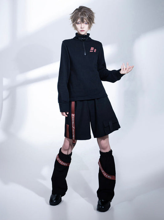Black and Red Futuristic Techwear Landmine Style Straight-leg Shorts + Flared Leg Warmers