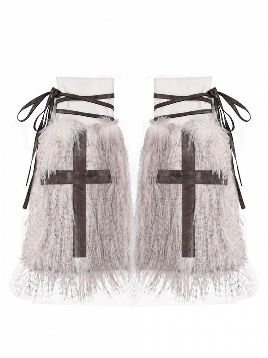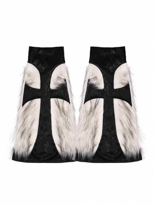 Black Gothic Cross Shaggy PU Leg Warmers