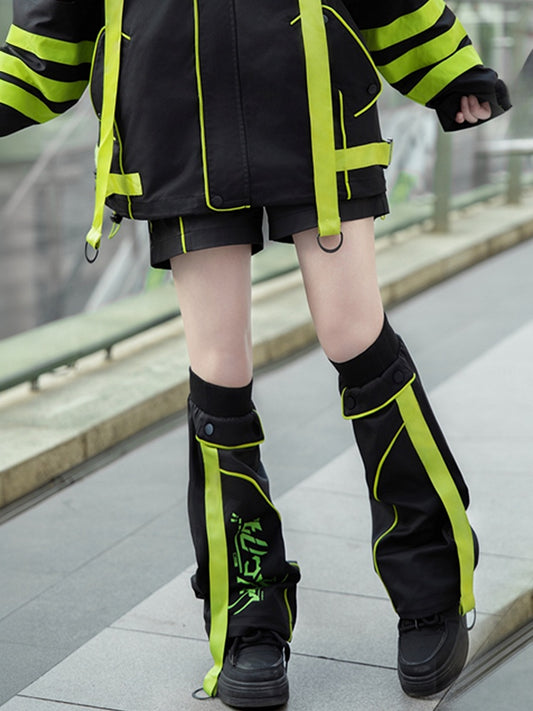 Black and Green Futuristic Techwear Landmine Style Straight-leg Shorts + Flared Leg Warmers