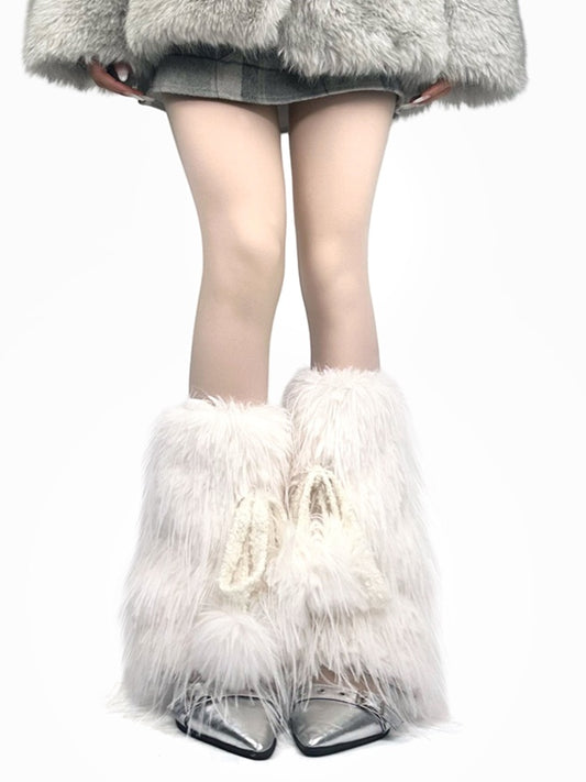 White/Brown Y2K Shaggy Leg Warmers