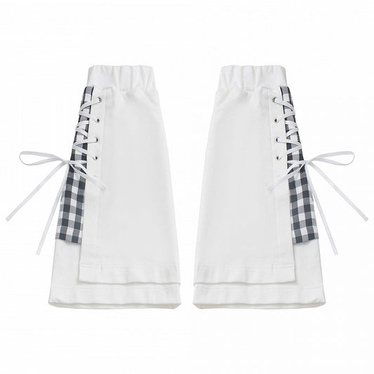 White Plaid Pattern Lace-up Details Leg Warmers
