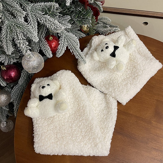 White Lolita Bear Doll Bowknot Leg Warmers