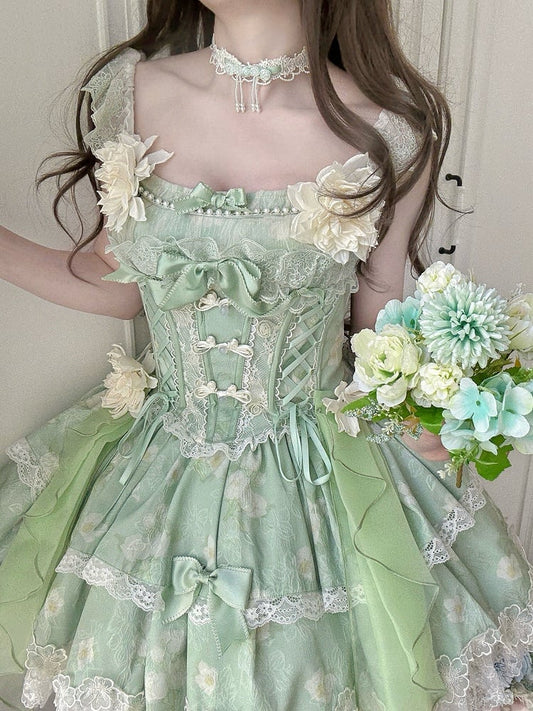 Beaded Mint Choker with Fringe Green-Accented Lace