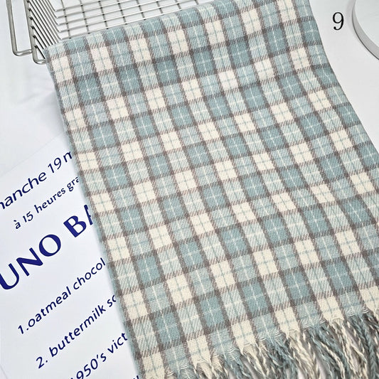 Sweet Plaid with Pom-Pom Scarf Set and + Coat Creamy Winter Lolita Accents White Bow