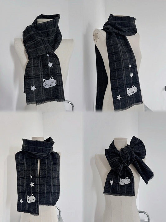 and Scarf Kitten Dark Gray Embroidery Star with Plaid