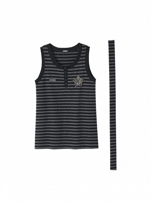 Detachable Dark Preppy Light Gray Faux Scarf with Two-Piece | Stripe Camisole