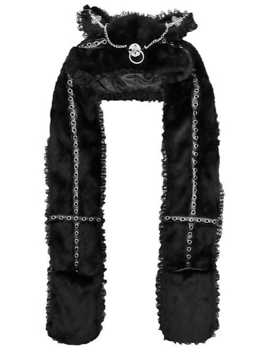 Ear Scarf Plush Cat with Hat Gothic Punk Details Metal