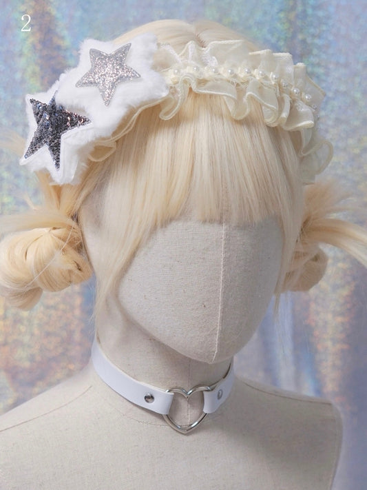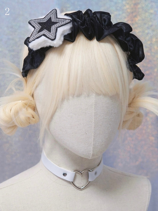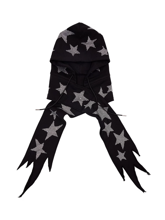 Black/White Star Rhinestones Hat and Scarf All-in-one