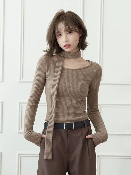 2Wey Knit Border Mode Slim Wan Piece + Knit Scarf