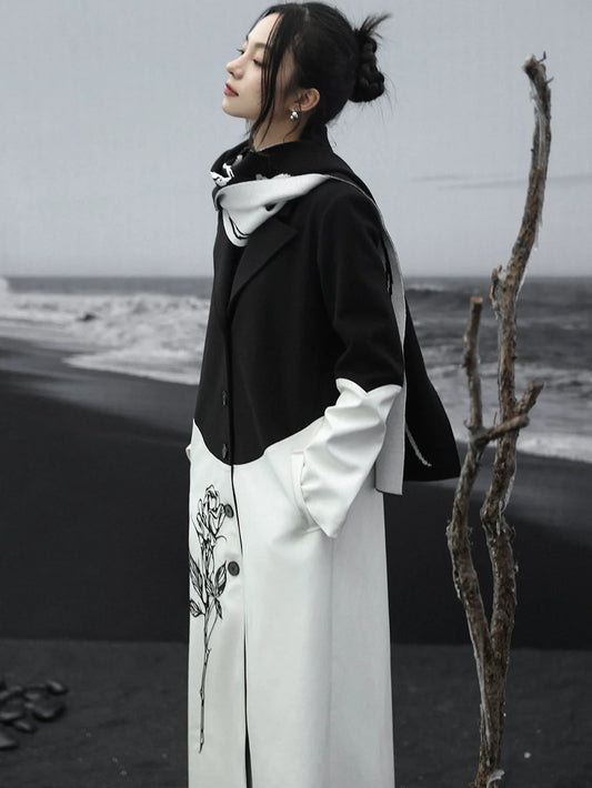 Scarf White Contrast Knit Black and Design Shawl
