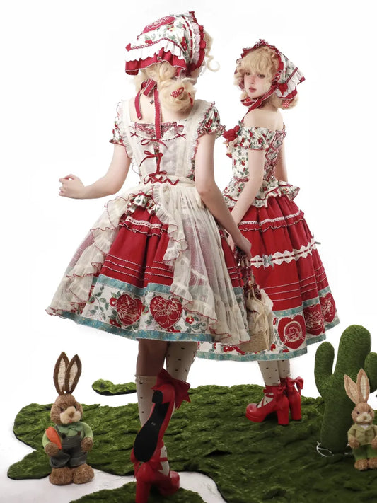 Red Apple Print Country Lolita Triangle Scarf