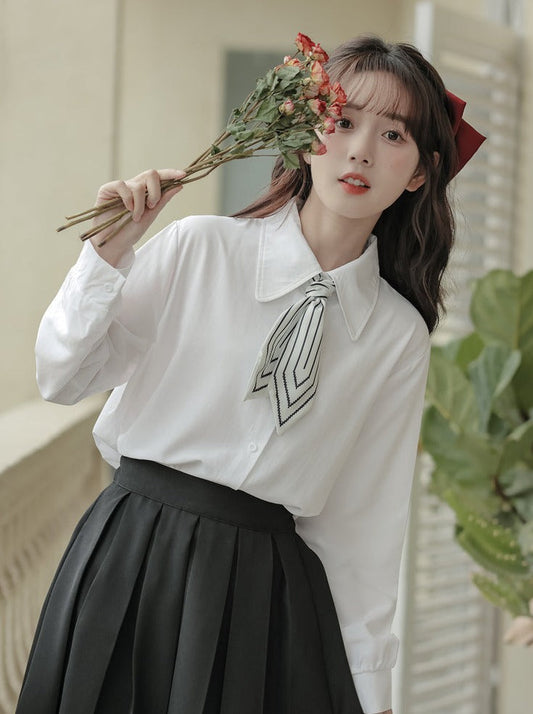 Scarf + Lapel Long Shirt Skirt Pleated