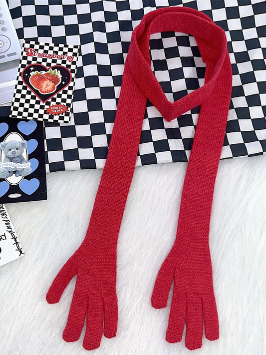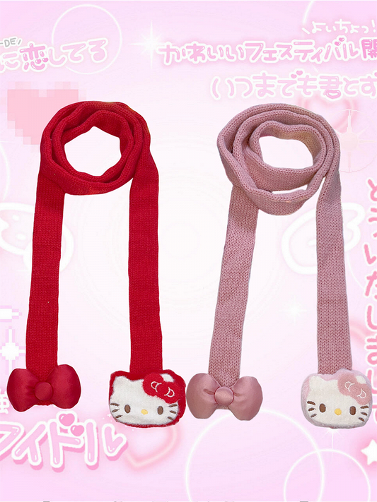 Red/Pink Y2K Kitty Design Knitted Scarf