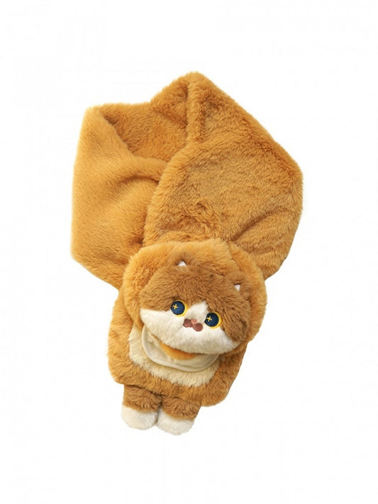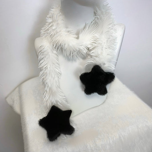White Puppy-shaped Bow Detail Shaggy Scarf