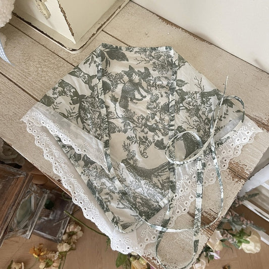 Floral and Kitty Print Cat Ears Triangle Scarf