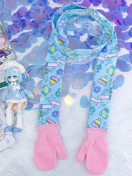 Y2K Blue Fairy Kei Cartoon Print Gloves-shaped Scarf