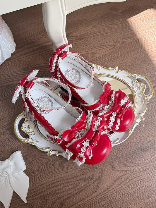 - Shoes Top Round-Toe Bow Red Lace-Trimmed at Sweet Heart Snap Low-heel Lolita