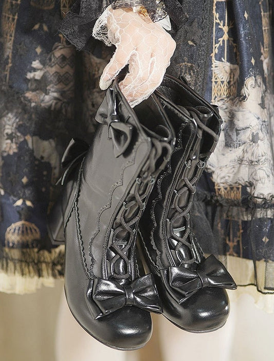 White Sweet Bow with Boots Lacing Adjustable Accents Mid-calf Lolita
