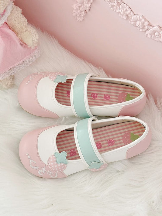 Indoor Appliques with Strawberry Sweet Shoes Lolita Round-Toe Pink