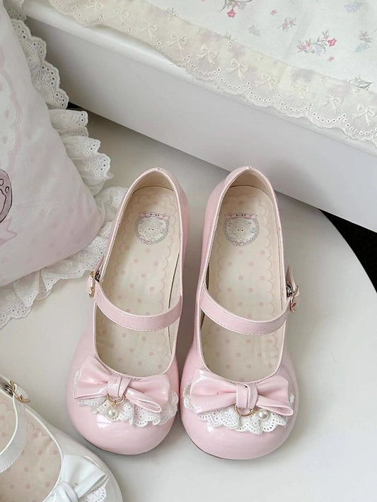 Bead - White Sweet Mid-heel Shoes -Toe Round Bow Lolita Mary Charm on Jane Top