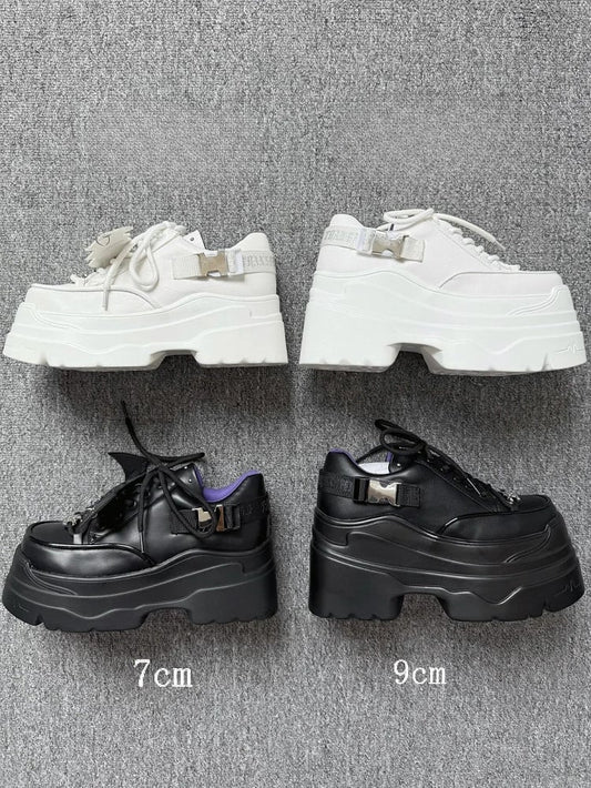 Punk Shoes Strap Closure Black - Lace-up Platform Buckle
