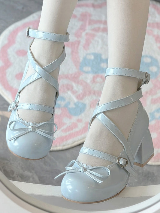 Mid with Jane Mary Sweet Lolita Heel - Blue Shoes Knotted Bow