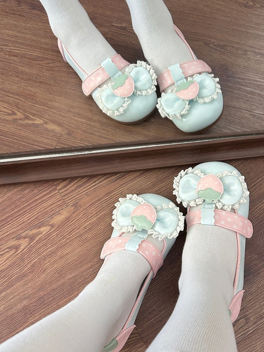 Strawberry in Scalloped with Lolita Shoes Clip Top Round-Toe Mary Jane Sweet Bow Hem