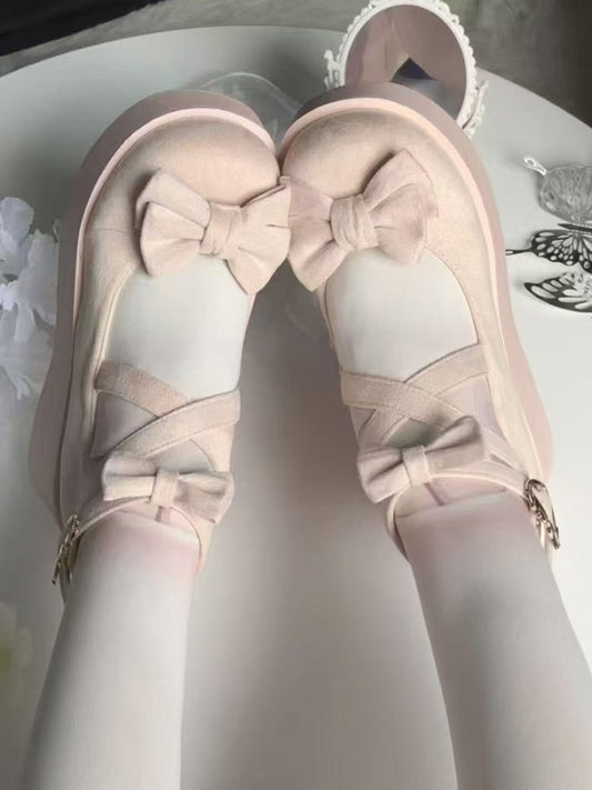 Suede Snap Lolita with Pink Bow Design and Details Sweet Shoes