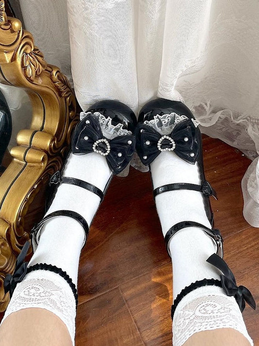 White Lace Mid-heel and Lolita Trim Bow Shoes Accents with Sweet