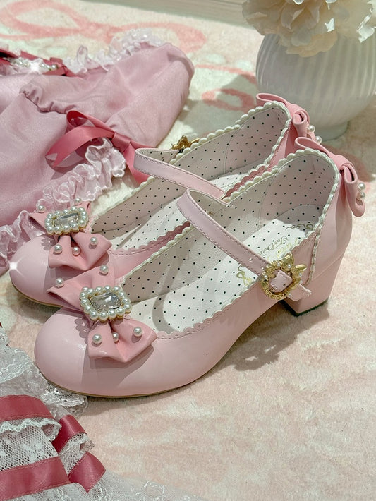 Shoes Janes Bowknot Rhinestone Decorated And Round Mary Lolita Details Beaded Toe Pink
