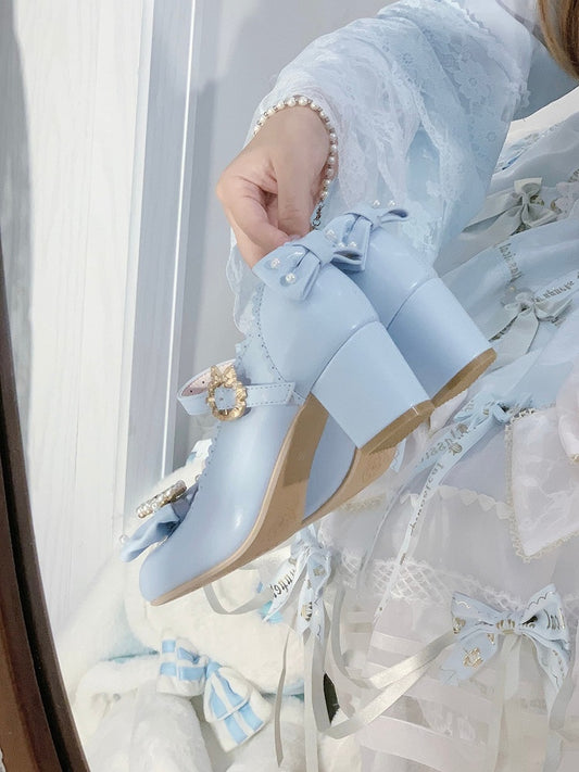 Round Mary Toe Decorated Lolita Rhinestone And Details Bowknot Janes Beaded Blue Shoes