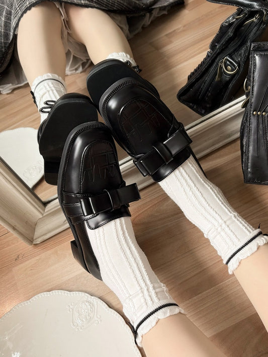 Black Toe Bowknot Shoes Platform Details Round Janes Sweet Mary Lolita