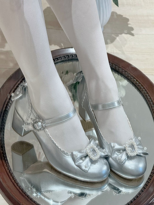 Shoes Mary Round Toe Details Lolita Janes Beaded Silver And Bowknot Decorated Rhinestone