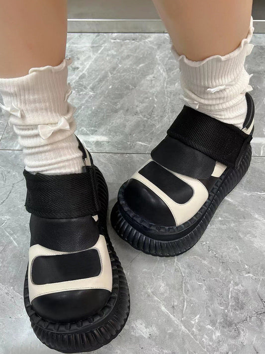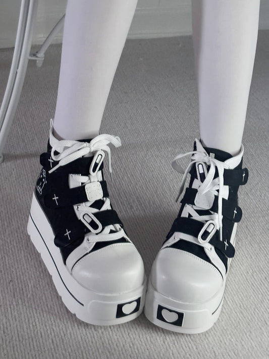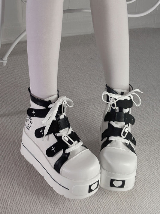 Yami Kawaii Black & White Round Toe Platform Sneakers