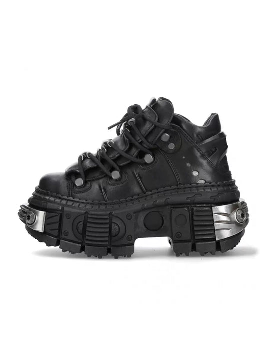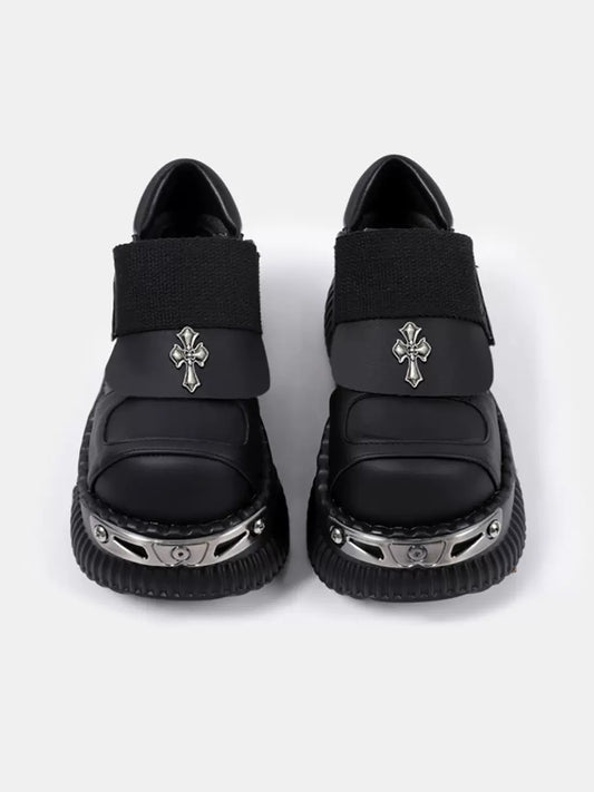 Chain Punk Metal Platform Plain Dark Shoes High-top
